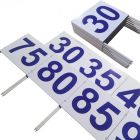 * Двусторонние таблички белого цвета с синими цифрами на обеих сторонах.