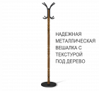 Стойка вешалки выполнена из формованной трубы с текстурой под "дерево". Корона дополнена классическими металлическими крючками. Все это создает ощущение надежной вешалки из натурального массива, способной задать настроение и уют дому, офису или кафе.