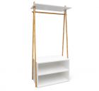 Современная и стильная компакт-прихожая оборудована открытой штангой-вешалкой и обувницей, состоящей из двух полок. На верхнюю часть обувницы можно поставить сумки, положить перчатки и необходимые мелочи. Вешалка-штанга стилизована под изгиб живого дерева и покрыта пленкой PVC имитирующей натуральную текстуру. Компакт-прихожая прекрасно дополнит Ваш стильный интерьер и позволит с удобством хранить верхнюю одежду, обувь и аксессуары. Сочетание светлого ЛДСП и текстуры дерева, а также оригинальный декор создадут модную атмосферу.
