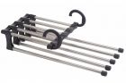 Вешалка для брюк 5 в 1 предназначена для минимизации пространства в шкафу или багаже. Может использоваться для того, чтобы повесить брюки, рубашки или другие предметы гардероба. Приспособление состоит из каркаса с 5 вешалками из нержавеющей стали и двух крючков. Вешалки способны выдвигаться при необходимости за счёт своей конструкции. Имеет два режима: вертикальный и горизонтальный. ПРЕИМУЩЕСТВА: Минимизирует пространство в шкафу и багаже; Легко складывается и раскладывается; Выдвижная конструкция; Портативная и многофункциональная; Удобно хранить брюки, юбки, свитера, шарфы или другие предметы гардероба; Вещи не мнутся, хорошо просматриваются, их легко и быстро выбирать; Практичная и долговечная.
