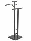Элегантная, строгая вешалка для повседневного костюма в кабинет или спальню Перекладина для брюк, плечики из натурального дерева, есть место для того, чтобы повесить ремень Отлично смотрится как с костюмом, так и без него, отлично дополняет интерьер кабинета или спальни Удобная чашечка для мелочей, всегда сверху одежды, можно положить любую мелкую вещь, которая всегда будет на виду Идеальный корпоративный подарок деловому мужчине, которым он сможет воспользоваться как дома, так и на работе ___ Вешалка напольная - незаменимый предмет для хранения верхней одежды и носимых вещей в коридор, прихожую. Будет хорошей альтернативой вешалке настенной. Отлично подойдет и для дома и как офисная. Крючки можно использовать и для плечиков, и для одежды, и для размещения органайзера. Отличный комплект в прихожую, в гардероб, в гардеробную комнату, в баню, в ванную, на балкон - вешалка напольная, настенное зеркало и банкетка в одном стиле. Вешалка стойка напольная для хранения вещей может быть как деревянная, так и металлическая. МАТЕРИАЛЫ: основание МДФ+шпон дуба, плечико, перекладина, стойки- массив дерева+эмаль УПАКОВКА: 105х43х5,5 см., 1 место ВЕС: 7 кг Цвет: темно-коричн.,белый, серый графит