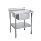 - Наличие выдвижных ящика в разделочном столе позволяет хранить посуду, инвенатарь, столовые приборы и личные вещи персонала изолированно друг от друга